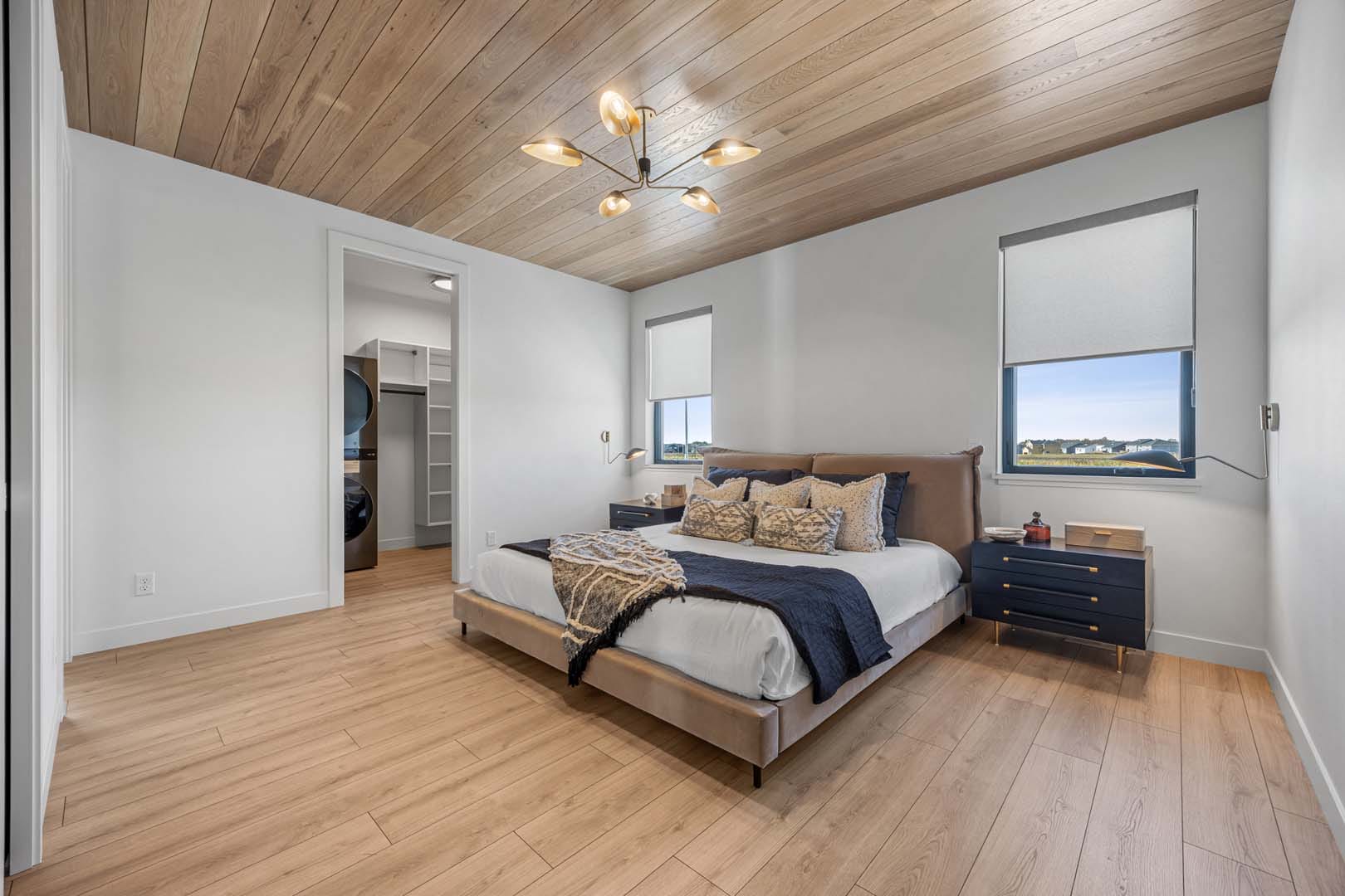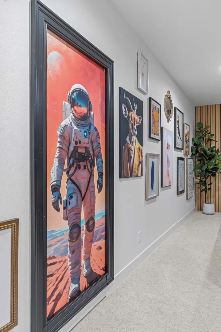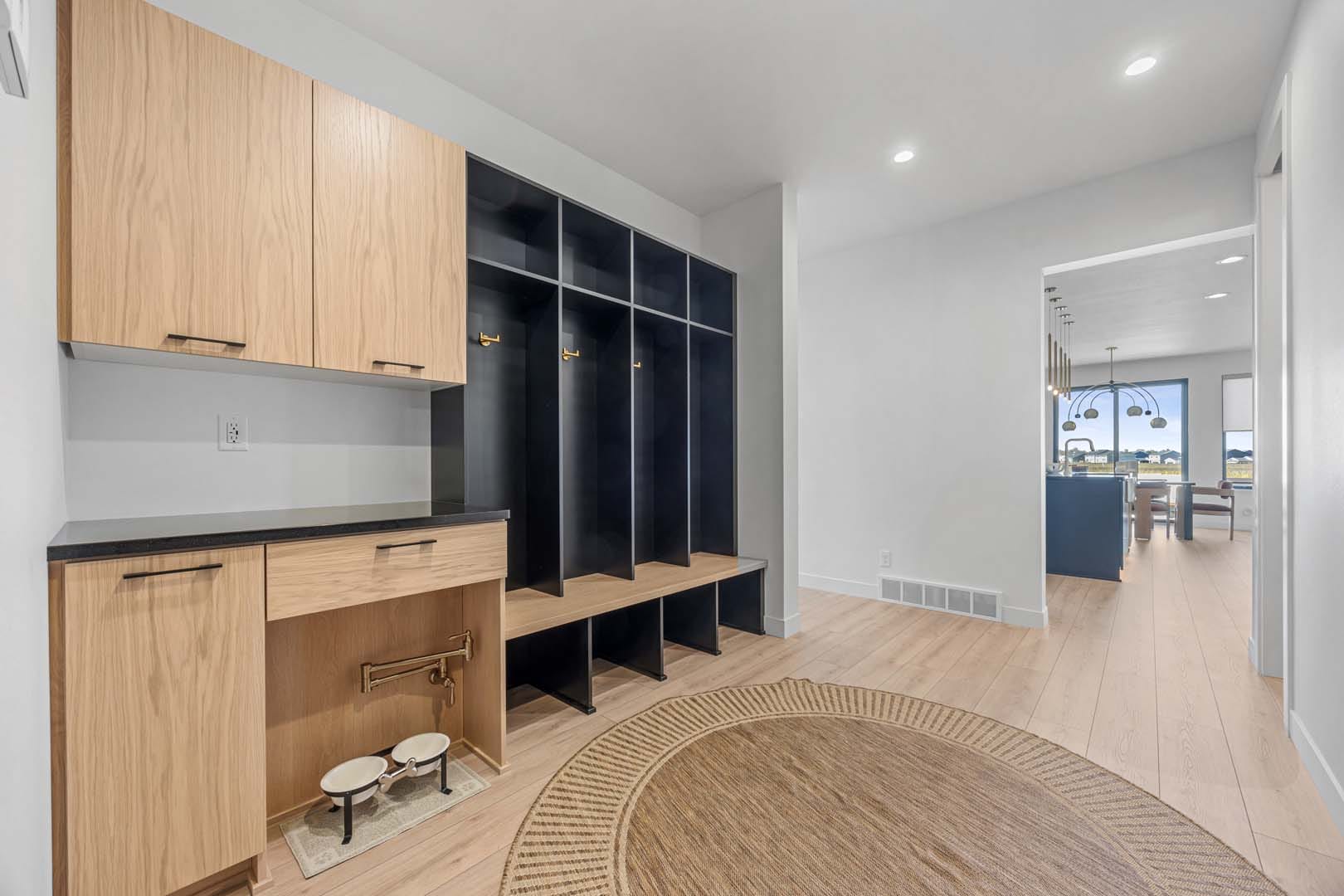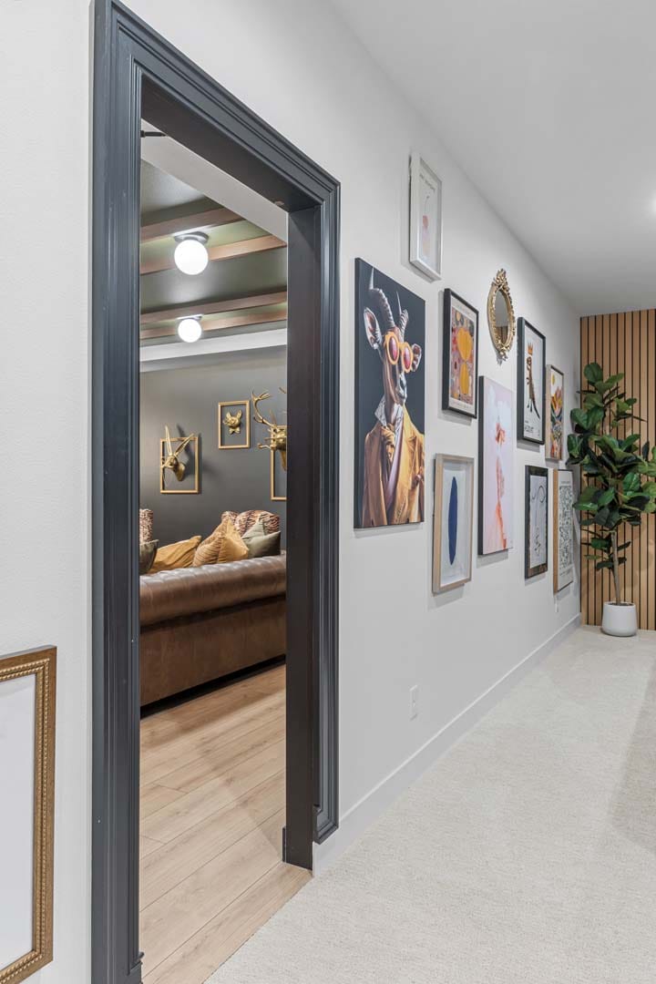 This Santa Monica home plan features every detail is designed with style, comfort, and modern living in mind. The great room sets the stage for memorable gatherings with a tray ceiling finished in white oak, a porcelain-tiled feature wall, built-in bench, shelving, and a sleek fireplace. The chef-inspired kitchen delights with premium JennAir appliances, quartz countertops, and a bold tile backsplash, while the rear foyer adds everyday function with custom cabinetry, cubbies, and even a pet watering station. The primary suite is a true retreat with dual walk-in closets and a spa-like bath featuring heated floors, a freestanding tub, and a spacious tiled shower. In the upper level, you’ll find a secondary suite with its own bath, two additional bedrooms, a shared full bath, and a stylish barn-door laundry. The lower level offers room for fun and relaxation with a custom-detailed game room, hidden speakeasy wet bar, finished storage, and more. With black Andersen windows, tongue-and-groove details throughout, and a fully finished garage for year-round use, this home blends timeless design with modern conveniences—making it one you’ll want to see in person.